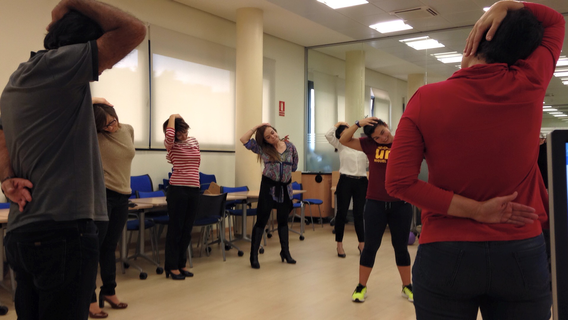 Moverse juntos une al equipo. Mejor colaboración, ambiente alegre, trabajo en equipo efectivo.